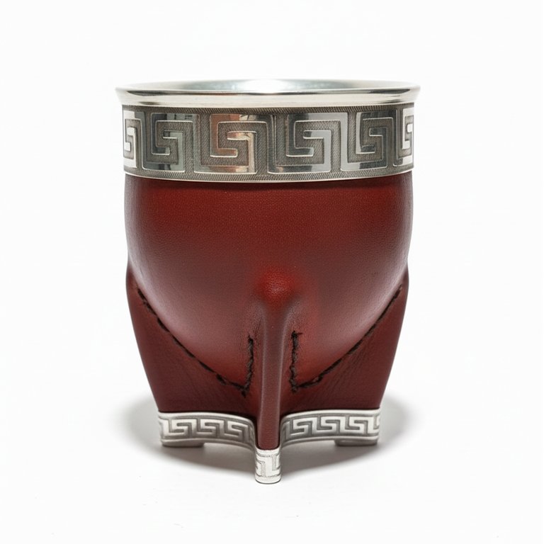 Mate imperial forrado en cuero, con base y terminaciones en alpaca. Pieza de alta categoría y excelente estabilidad, ideal para uso diario y para personalizar con tu frase FACTS mediante grabado de precisión.