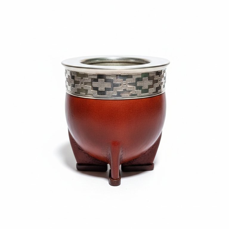Mate imperial forrado en cuero, con interior, virola y guarda de acero. Diseño robusto y de fácil mantenimiento, pensado para uso diario y para personalizar con tu frase FACTS mediante grabado de precisión.
